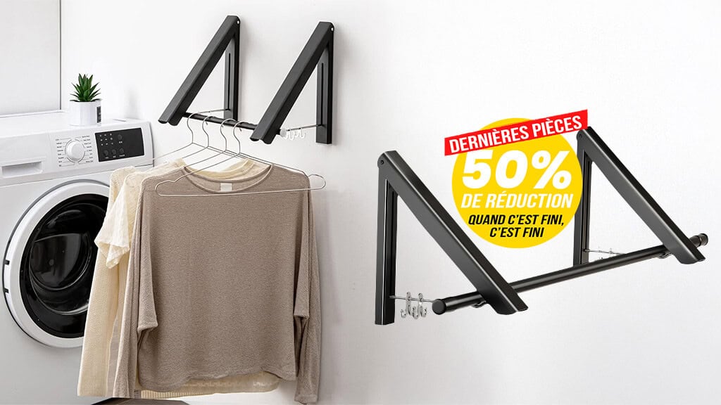 On en a mis deux côte à côte dans la buanderie, gain de place incroyable 🤩 Le linge sèche plus vite et ça ne prend aucune place au sol.