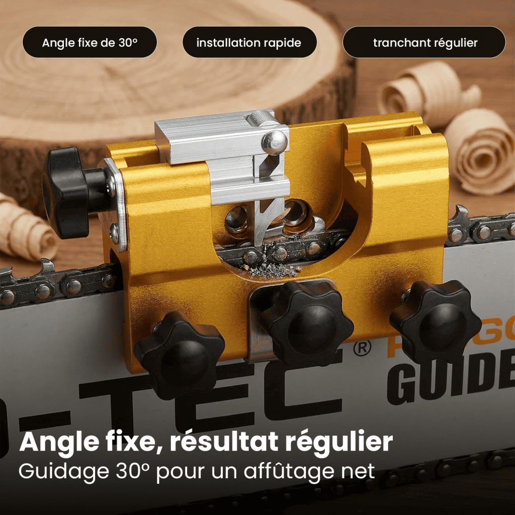 Avec un angle de 30 degrés parfaitement réglé, Axetron assure que ta tronçonneuse offre toujours des performances maximales.