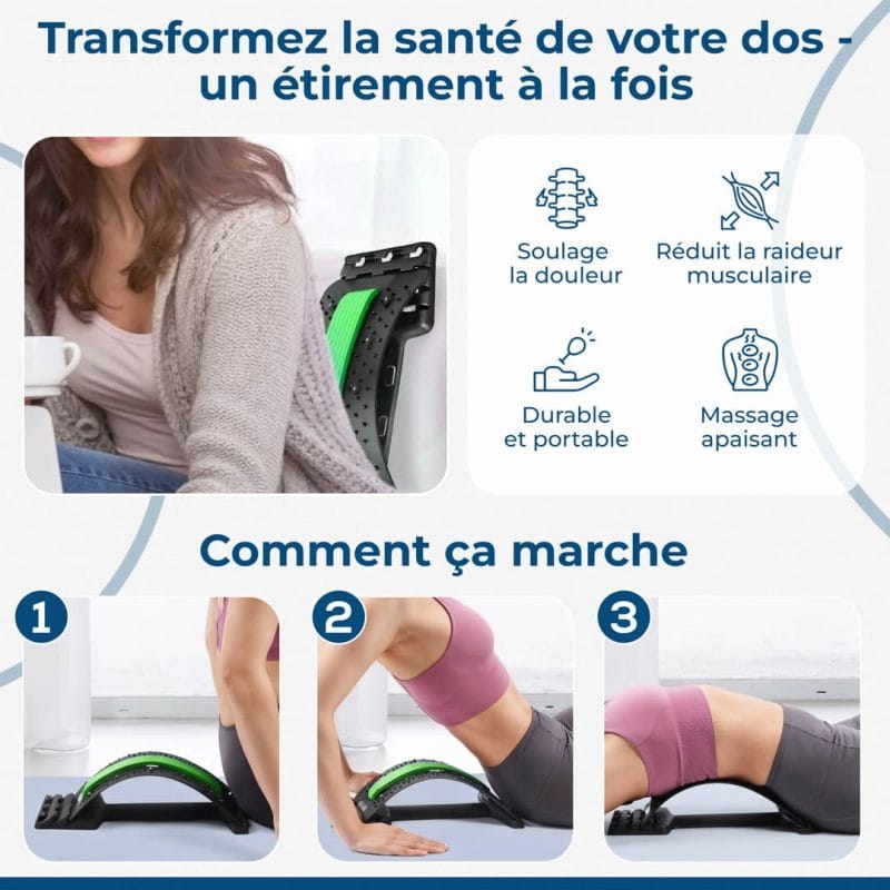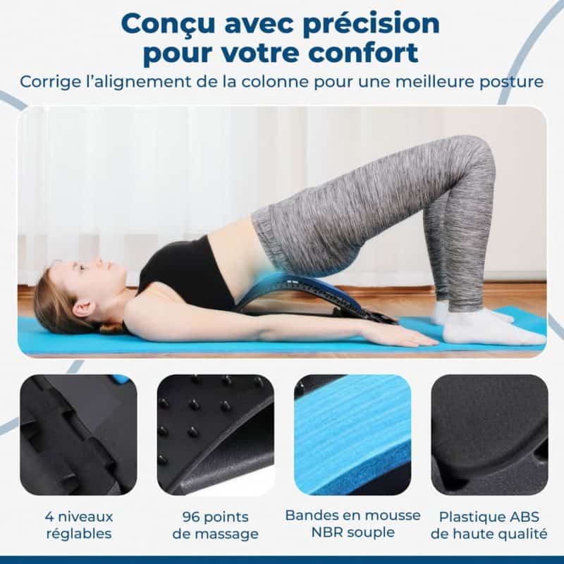 En seulement 10 minutes par jour, vous détendez vos muscles, réduisez la douleur et améliorez votre posture – sans traitements coûteux ni exercices compliqués. Offrez à votre dos les soins qu’il mérite et ressentez un soulagement immédiat, où que vous soyez.