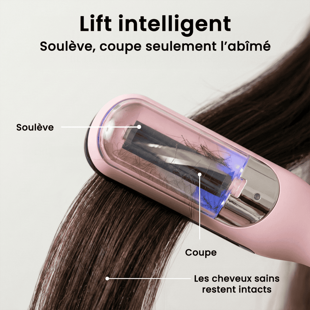Son système de levage avancé détecte les mèches endommagées et les coupe avec précision, sans toucher aux cheveux en bonne santé.