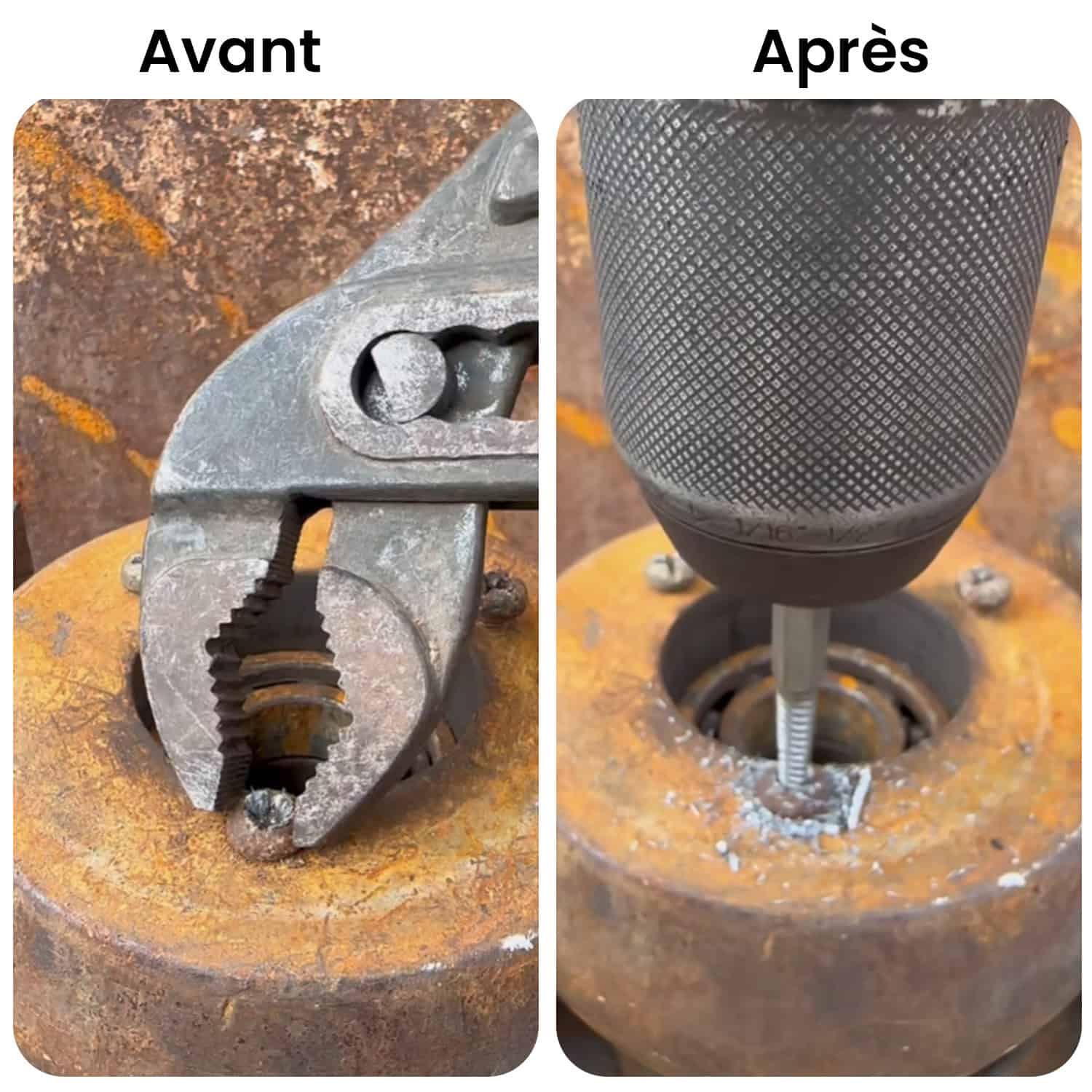Retirez les vis bloquées en toute facilité — sans force excessive, sans chaos, sans frustration.