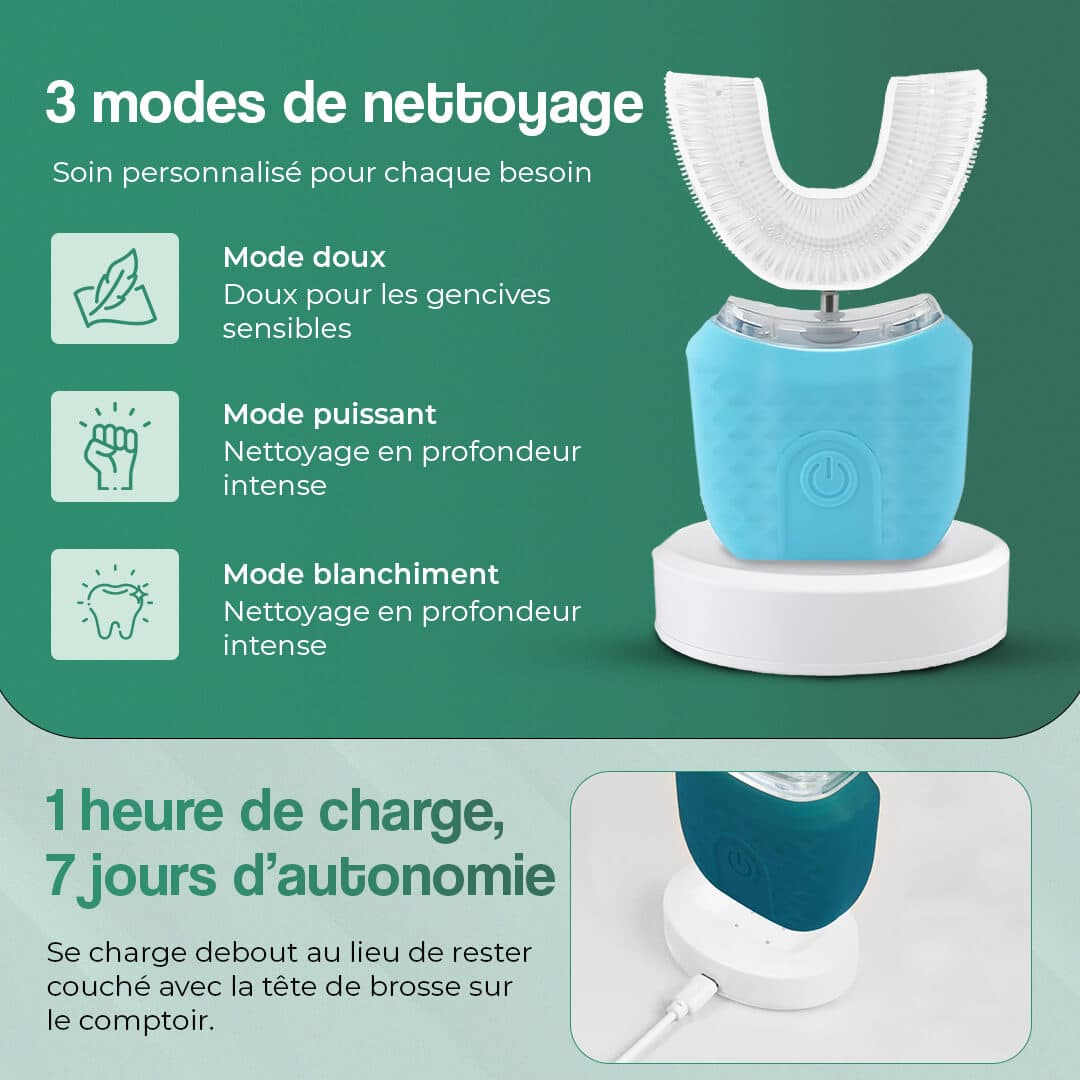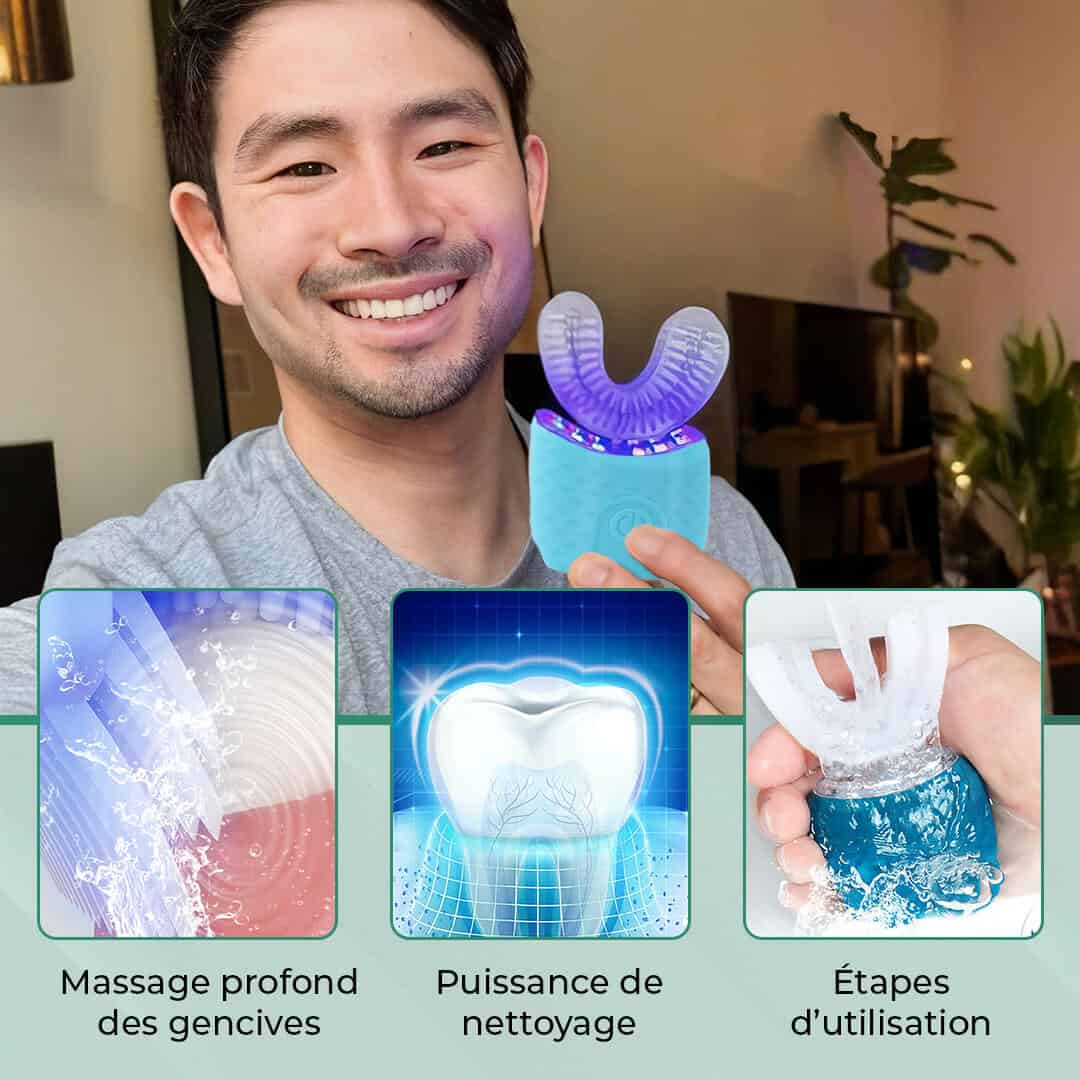 C’est comme un soin dentaire professionnel, sans douleur et sans effort. Sa forme en U épouse ton dentier, nettoie chaque recoin et protège tes gencives.