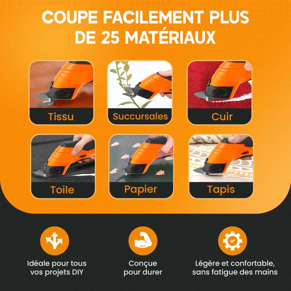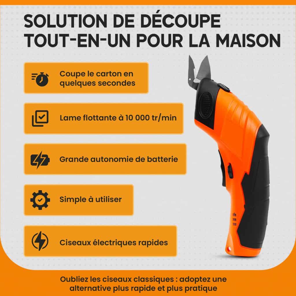 Coupez carton, plastique et tissu en un seul geste fluide — sans force et sans frustration.