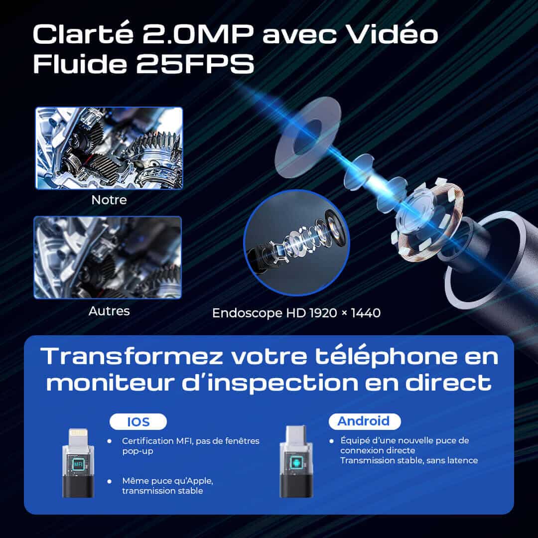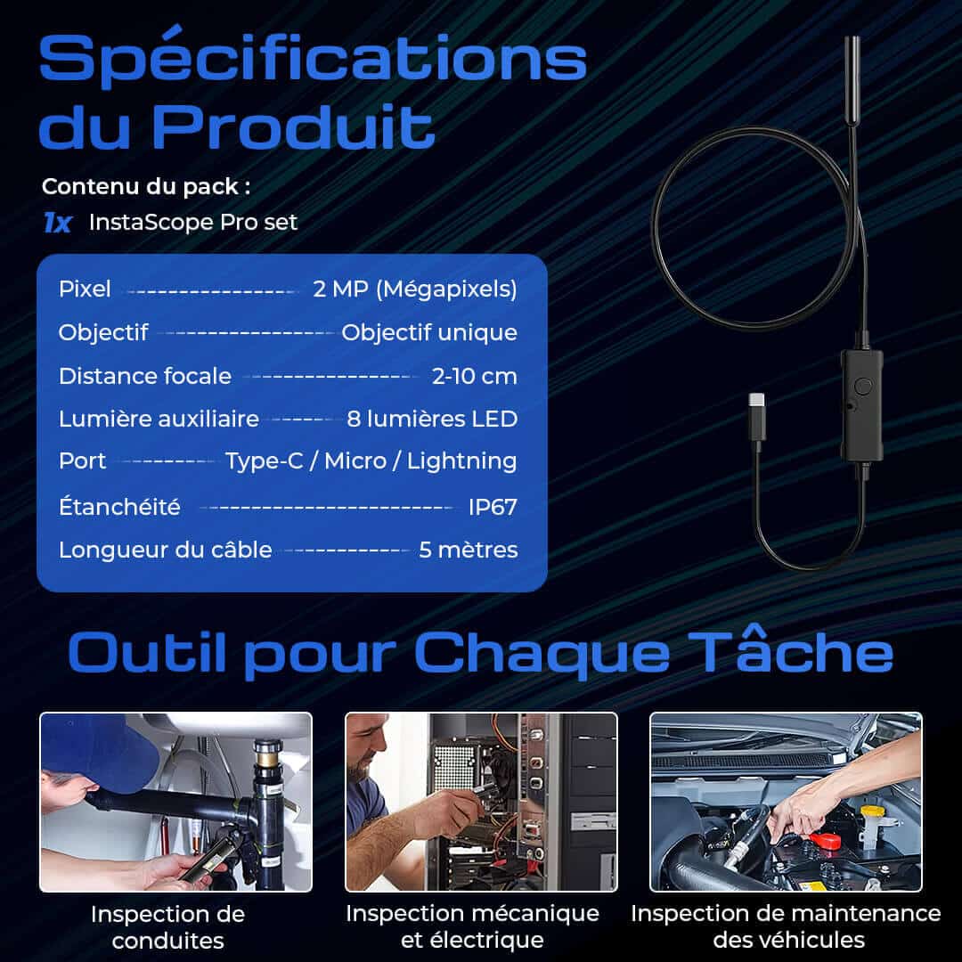 InstaScope Pro Endoscope – Caméra d’inspection flexible Plug & Play