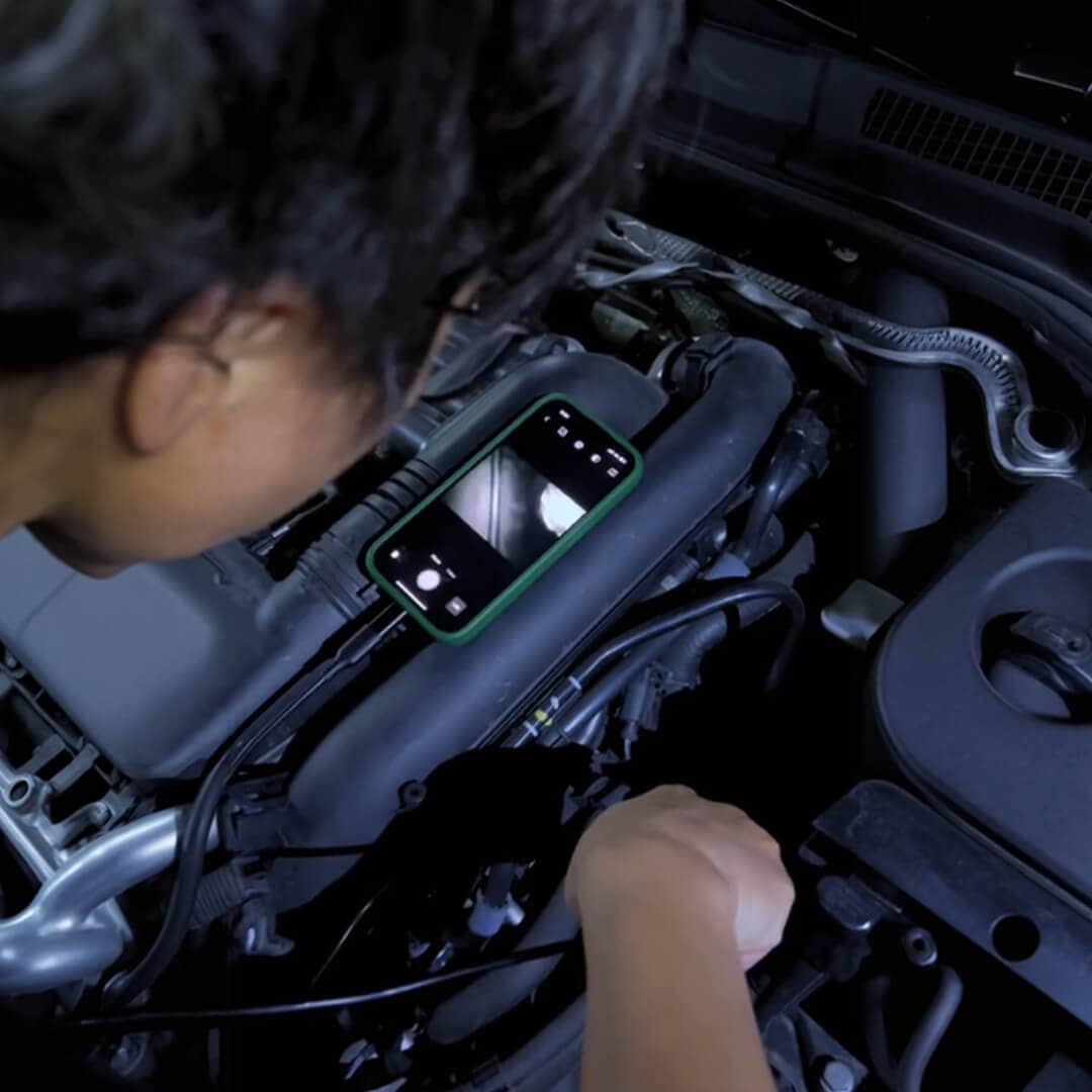 Grâce à l’éclairage LED puissant, au câble flexible et aux accessoires pratiques, tu accèdes facilement à chaque zone sombre ou difficile d’accès.