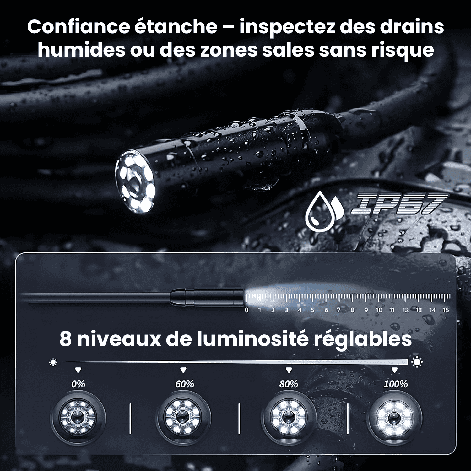Avec son indice IP67 et sa tête de caméra robuste de 8,5 mm, vous inspectez sans crainte des zones normalement inaccessibles.