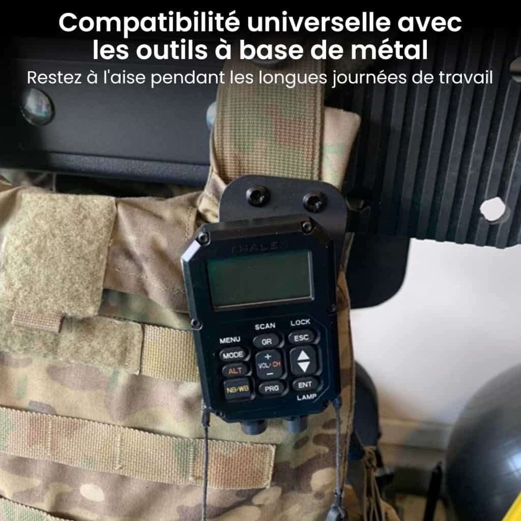 La plaque arrière en aluminium usiné et le clip en acier ressort sont conçus pour les vrais environnements de travail : poussière, chocs, froid, chutes… rien ne l’arrête.