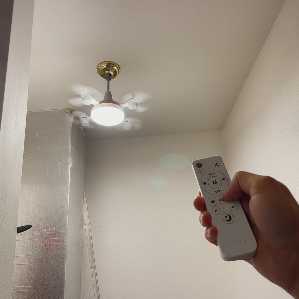 Visse simplement iFanGlow sur ta douille actuelle et utilise la télécommande pour gérer ton climat intérieur. En moins de 2 minutes, ta pièce se transforme.