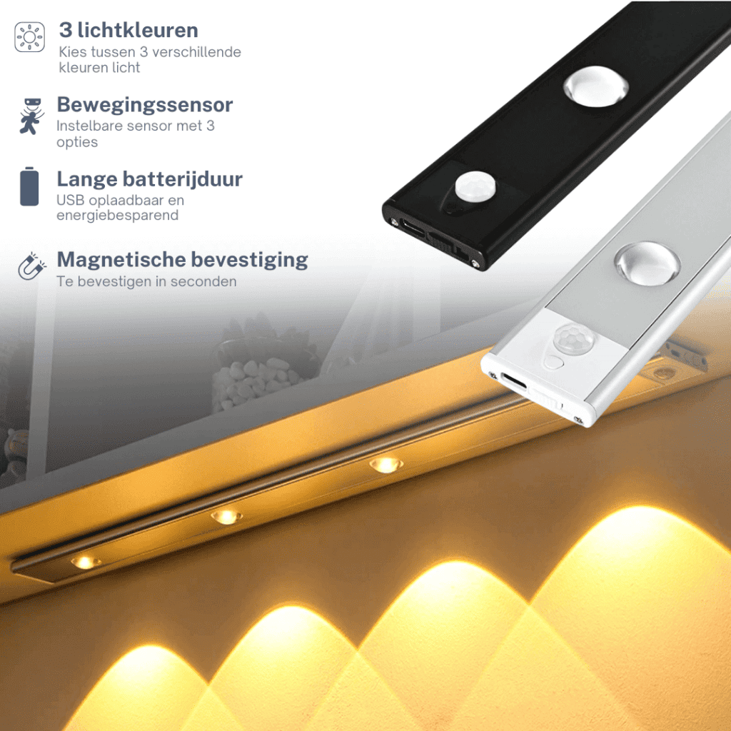 Met de LUMILITE™ LED Sensor Verlichting hoef je geen gereedschap of bedrading te gebruiken! Het installeren is super eenvoudig en kan zonder enige moeite gedaan worden dankzij de ingebouwde magneet en meegeleverde magneetstrips.