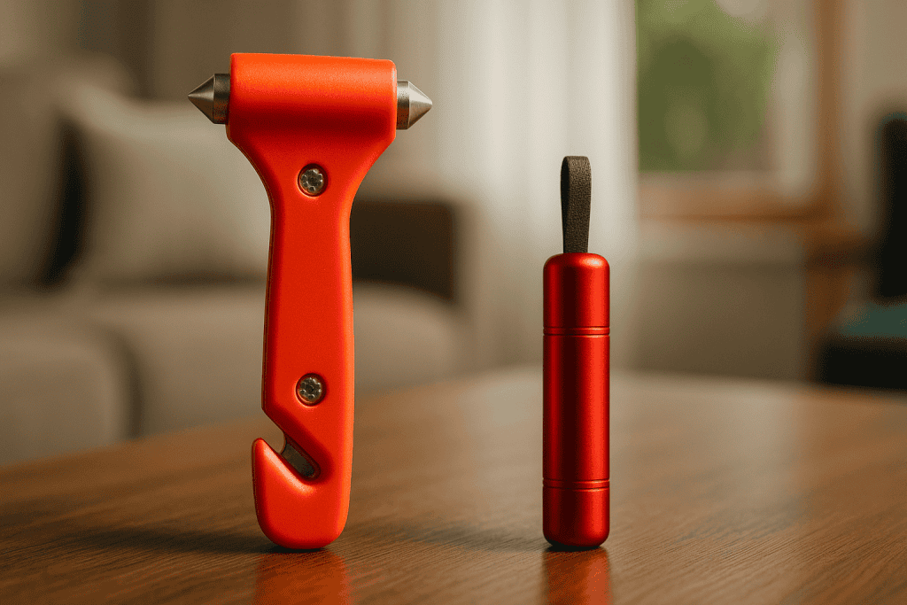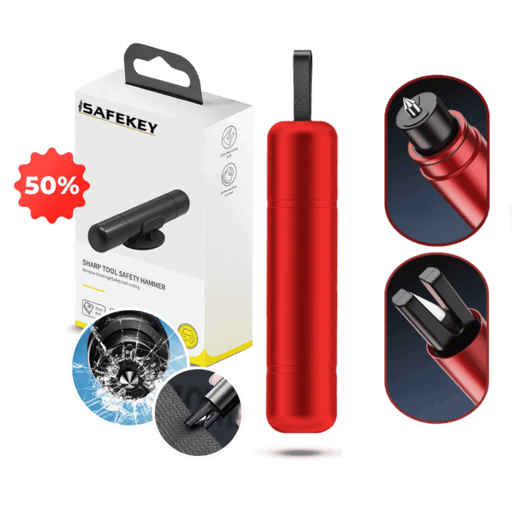 Un mini marteau brise-vitre avec coupe-ceinture intégré, assez compact pour votre porte-clés — assez puissant pour sauver une vie.