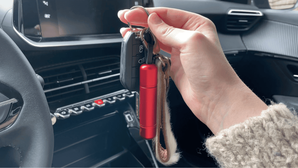 « Format porte-clés, aucune gêne au quotidien. Je me sens plus sereine en voiture, surtout avec les enfants. Je recommande ! »